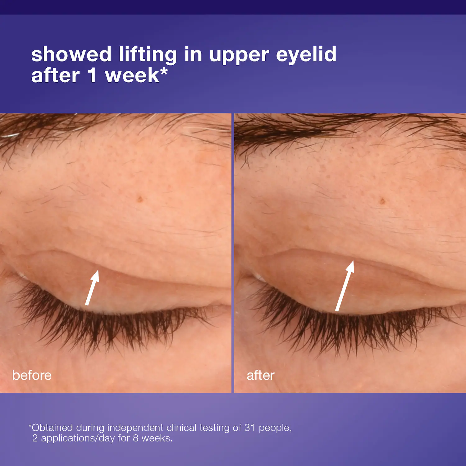 Clinical Results: In an independent clinical test of 31 people, after 2 applications per day for 8 weeks: