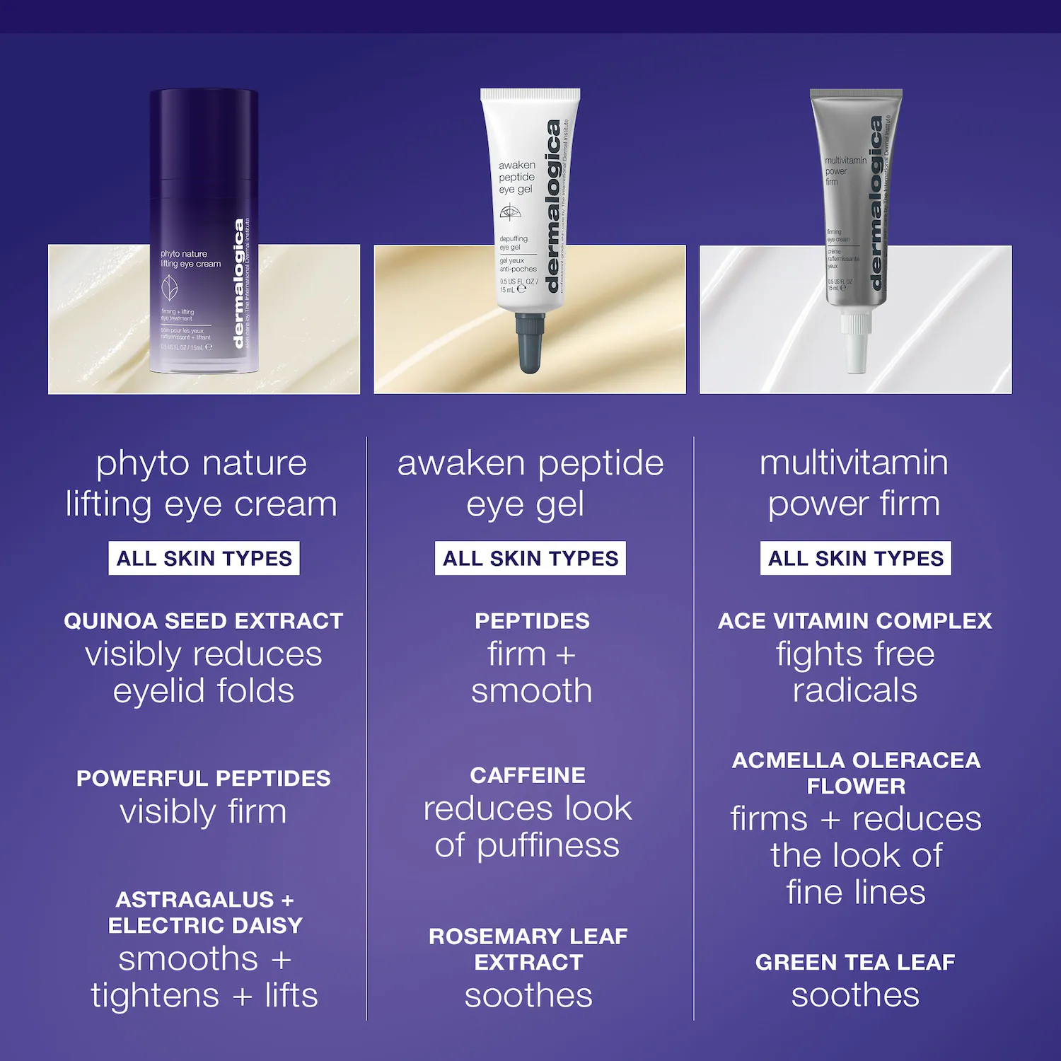 - Quinoa Seed Extract: Helps to visibly reduce eyelid folds and refine skin’s texture.